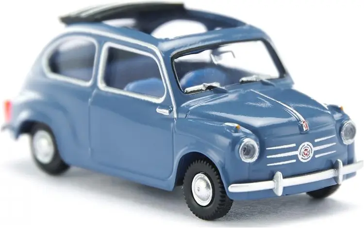Als 1955 der Fiat 600 zu den in ihrer Anzahl noch überschaubaren Händlern im ganzen Land ausgeliefert wurde, konnte der Kompaktwagen seine Rivalen von Lloyd, DKW und BMW auf Anhieb Paroli bieten. Der 600er war zwar weit vom Luxus entfernt, bedeutete jedoch automobilen Nutzwert – der Stolz seiner Besitzer war ihm sicher. Der brillantblaue Fiat 600, den die Traditionsmodellbauer mit geöffnetem Faltdach vorstellen, erfreute sich rasch großer Nachfrage. Ein kompakter, anspruchsvoller Familienwagen, freilich für die damals kaum vorhandenen Komfortbedürfnisse völlig ausreichend. Schließlich ging es vornehmlich um neu gewonnene Mobilität.
