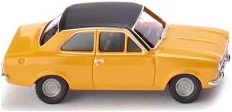 WIKING hat den Ford Escort Mark I mit weiteren Formenkreationen zu noch mehr Individualität verholfen. Die Neuheit erscheint mit eckigen Scheinwerfern und die Stoßstange verfügt über die zeitgenössischen Hörner – ein Feintuning, das der Miniatur zusätzlichen Esprit gibt. Auf Anhieb wirkt er aus heutiger Sicht gefälliger, die eckigen Scheinwerfer erscheinen integrativer. Und in der Tat hatten sich die Ford-Autobauer etwas dabei gedacht, denn lediglich der „Super“-Ausführung war dieses Upgrade vorbehalten. Nach einem authentischen Klassikervorbild miniaturisierte WIKING die 1:87-Miniatur, bei der die maisgelbe Karosserie durch das schwarze Vinyldach kontrastiert wird. Dabei bezieht Ford sowohl die A-Holme ein und schafft an der Heckpartie mit einem schwarzen Feld zusätzliche korrespondierende Erkennungswirkung für die Sonderausstattung. Für die britischen Ford-Werke sollte der Escort Mark I aber auf ganzer Linie ein Glücksgriff in ihrer Modellpolitik werden. Ab November 1967 lief der erste Escort im britischen Halewood vom Band und konnte rasch neue Käufer erobern. Die Verkaufszahlen übertrafen die optimistischen Erwartungen des Herstellers bereits nach zwei Monaten um 30%. Viele bezweifelten zunächst angesichts der durchaus gewöhnungsbedürftigen Frontoptik einen deutschen Markterfolg. Doch weit gefehlt. In Deutschland verließ schon der erste Wagen am 16. Januar 1970 in Saarlouis das Fließband – der Escort Mark I wurde bis 1974 sowohl in der zweitürigen als auch in der viertürigen Ausführung erfolgreich gebaut.