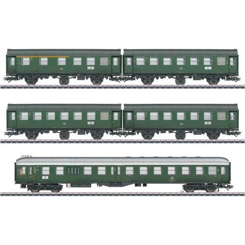 Vorbild: 2 Schnellzugwagen 1. Klasse A4üe (windschnittige Bauart ABü-38) und 1 Schnellzug-Speisewagen WR4ü[e] der Deutschen Bundesbahn (DB). Zuglauf: F 41 „Senator“ Frankfurt (Main) – Kassel – Hannover – Hamburg-Altona um 1957.