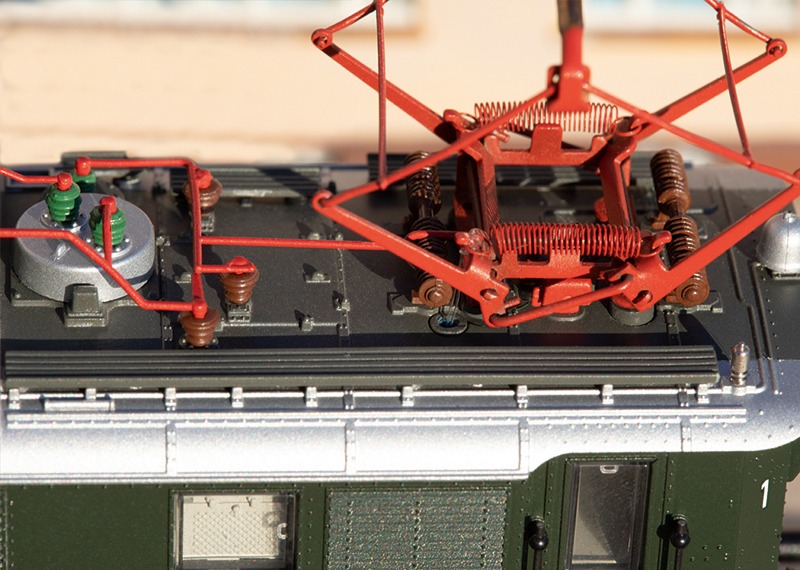 Modell: Mit Digital-Decoder mfx+ und umfangreichen Geräuschfunktionen. Geregelter Hochleistungsantrieb mit Schwungmasse, zentral eingebaut. Jeweils 2 Achsen in jedem Drehgestell über Kardan angetrieben. Haftreifen. Fahrtrichtungsabhängig wechselndes Dreilicht-Spitzensignal und zwei rote Schlusslichter konventionell in Betrieb, digital schaltbar. Spitzensignal an Lokseite 2 und 1 jeweils digital separat abschaltbar. Wenn Spitzensignal an beiden Lokseiten abgeschaltet ist, dann beidseitige Funktion des Doppel-A-Lichtes. Führerstandsbeleuchtung separat digital schaltbar. Beleuchtung mit wartungsfreien warmweißen und roten Leuchtdioden (LED). Beide Scherenstromabnehmer als Digital-Funktion separat heb- und senkbar. Separat angesetzte Griffstangen. Führerstände mit Inneneinrichtung. Maschinenraum mit Relief-Inneneinrichtung. Ansteckbare Bremsschläuche, Kupplungshaken und Heizkupplungen liegen separat bei. Länge über Puffer 16,4 cm.